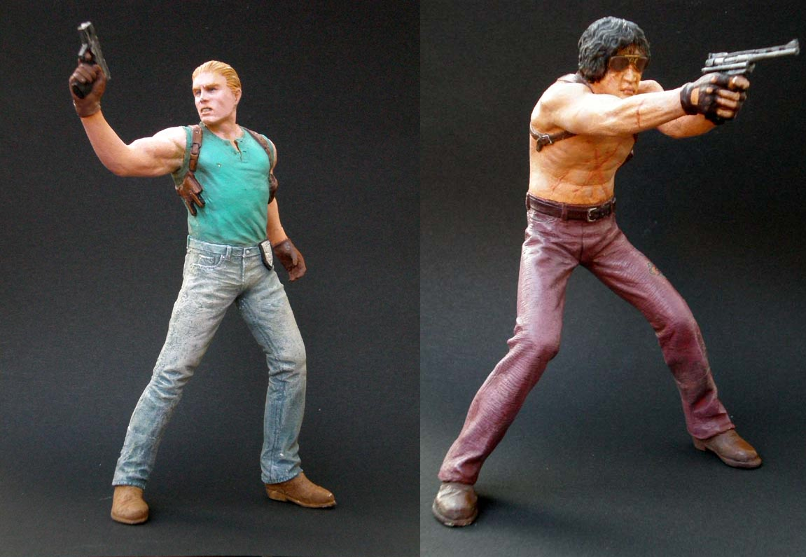 Custom made clay statues of Stick and Busujima from Zombie Revenge