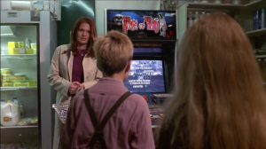 Another appearance of the HotD arcade cabinet in Dude Where’s My Car. The arcade shows off highscores and the opening featuring Dr. Curien.